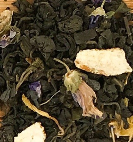 Ingredienti: Tè verde cinese, aromi naturali, Ginger radice 2,5%, limone scorze, malva fiori, aroma, calendula petali.