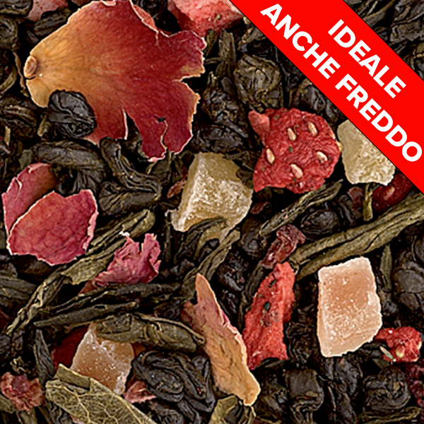 Miscela romantica creata dalla nostra tea blender nel 2009. A base di tè verdi di Cina e Giappone, dal modesto contenuto di caffeina, arricchita da pezzetti di papaya, fragola e petali di rosa è la miscela perfetta per chi desidera una bevanda piacevole in ogni momento. Il profumo è dolce e fruttato di fragola matura ed il gusto in tazza è morbido e soave.