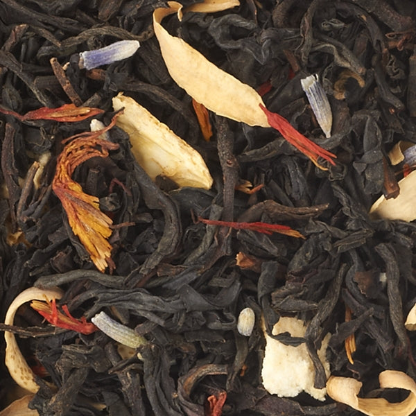 Ingredienti: Tè Neri (Cina, Sri Lanka, India), Arancio Scorze, Lavanda Fiori, Arancio Fiori, Cartamo Petali, Aromi.