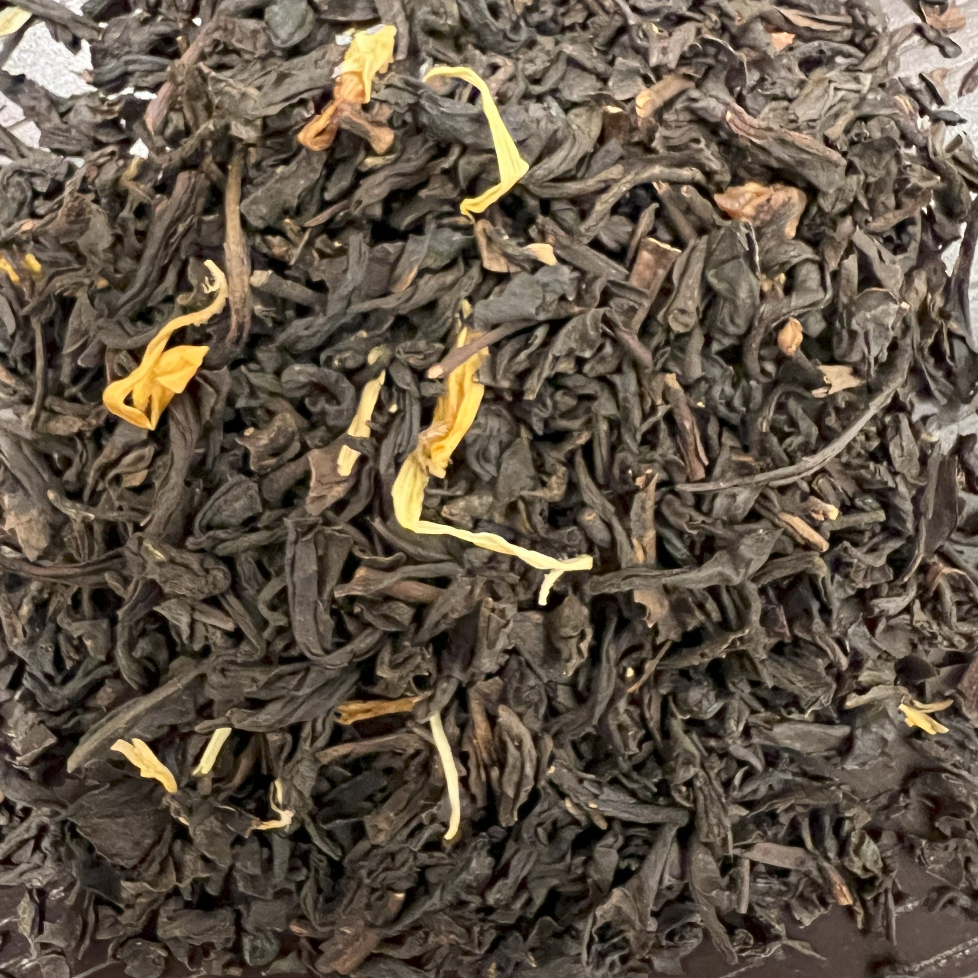 Un classico tra le miscele aromatizzate, tè nero cinese, pesca in pezzi, e fiori di calendula.