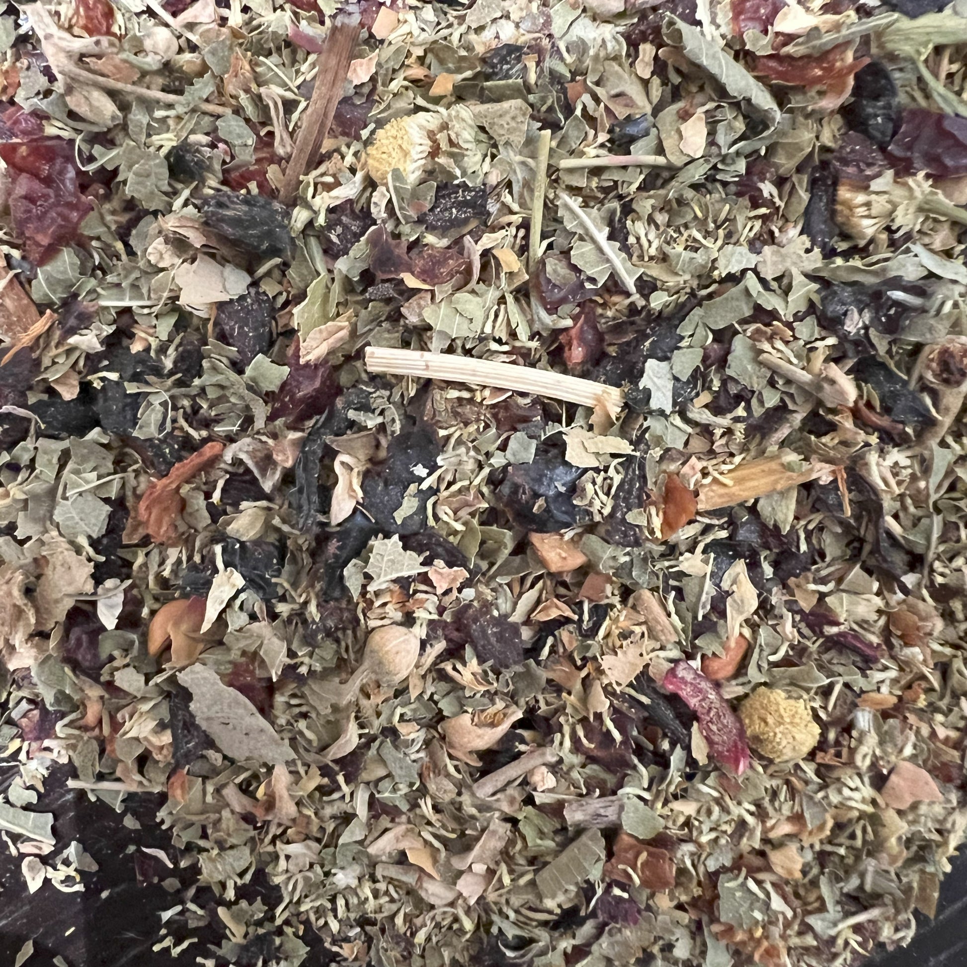 Una miscela di erbe dalle proprietà rilassanti, per concludere una giornata impegnativa: rosa canina, karkadè bianco, tiglio fiori e brattee, camomilla, petali di rosa, con il profumo soave di fragole e pesche mature.