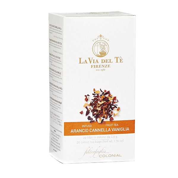 Ingredienti: Karkadè, Arancio Scorze 35%, Rosa Canina, Aromi, Cannella Corteccia 2,5%, Calendula Petali, Aroma Naturale di Vaniglia 0,5%.
