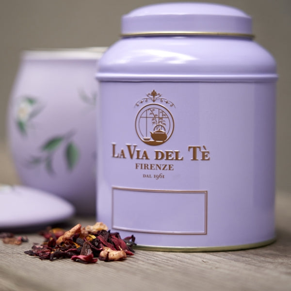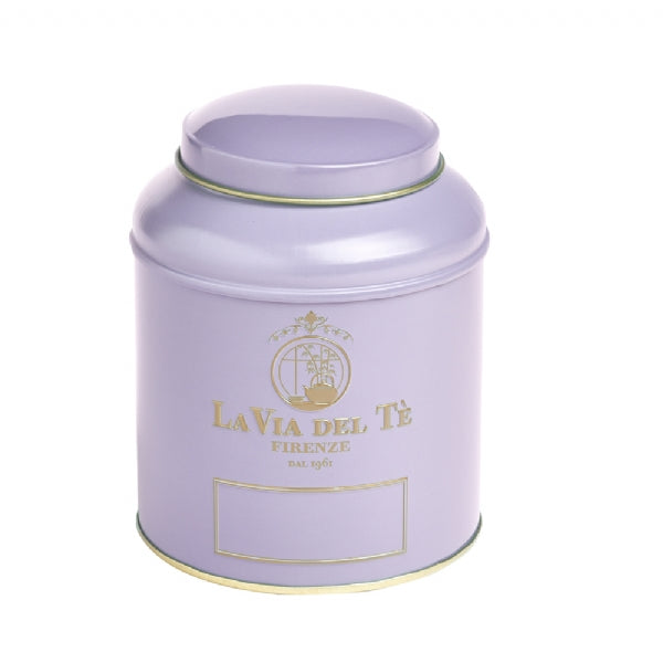 Realizzato in latta, contiene fino a 125 grammi, in colore lavanda.