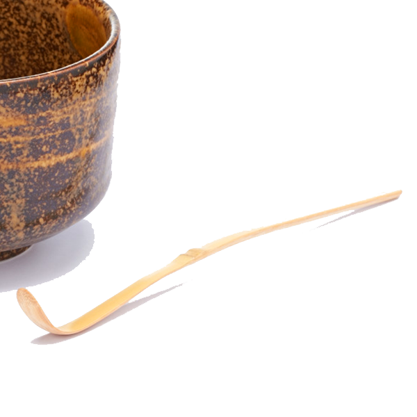 Palettina dosatè in bambù chiaro classico, utilizzata durante la cerimonia tradizionale del tè giapponese, per prelevare la giusta dose di Matcha.