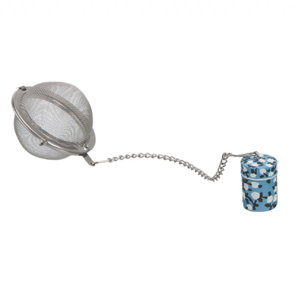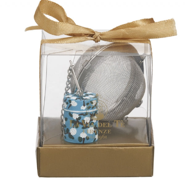 Classico infusore da tè a pallina in acciaio inox con dettaglio contenitore di tè. In scatola regalo con fiocco. Diametro: 5 cm. Perfetto per prepararsi una tazza di tè in foglia.
