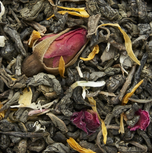 Ingredienti: Tè verdi (Giappone, Cina), Rosa boccioli, aromi naturali, calendula petali, fiordaliso petali