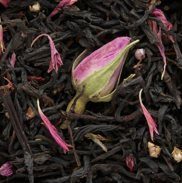Ingredienti: Tè neri (Cina, Sri Lanka), rosa boccioli, aroma naturale, aromi, fragola pezzi, erica fiori, fiordaliso petali