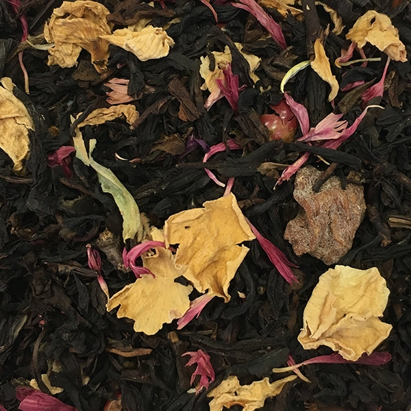 Ingredienti: Tè Neri (India, Cina), Aromi Naturali, Aroma, Pesca, Rosa Petali, Pepe Rosa, Fiordaliso Petali.