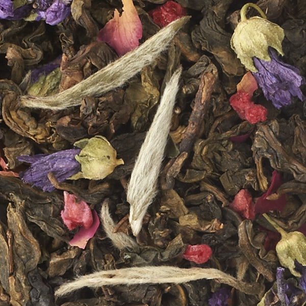 Ingredienti: Tè Oolong Semi-Ossidato (Cina), Tè Bianco (Cina), Aroma, Rosa Petali, Lampone, Malva Fiori, Aroma Naturale.