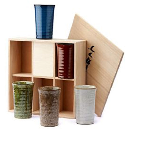 Set di 5 tazze alte artigianali in ceramica giapponese, con scatola regalo in legno.