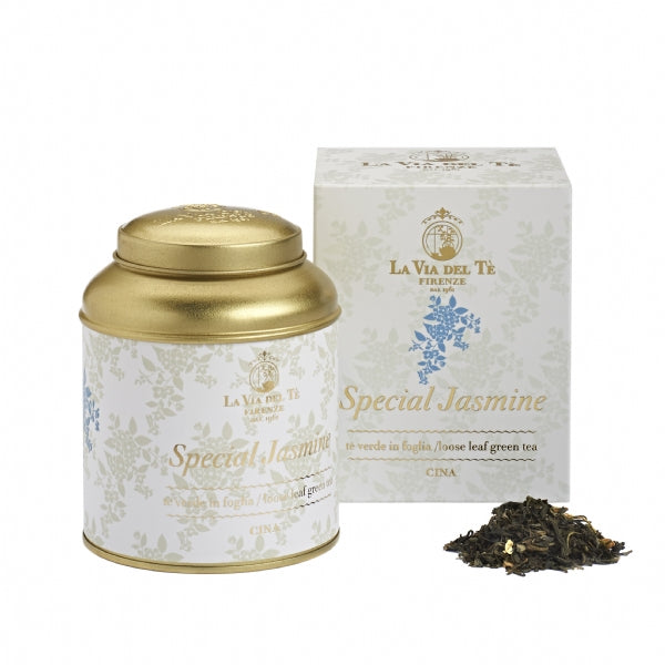 Il tè al gelsomino è una specialità originaria del Fujian in Cina, ottenuto dalla miscelazione di fiori freschi con le foglie di tè verde. Il tè (igroscopico) assorbe naturalmente il profumo dei fiori e regala in tazza un infuso fresco e intenso, con retrogusto dolce e floreale a lungo persistente. Apprezzatissimo in tutto il mondo, è ottimo anche freddo e accompagna mirabilmente piatti di pesce, pollo, verdure al vapore e riso, così come biscottini da tè e dolci al cucchiaio.
