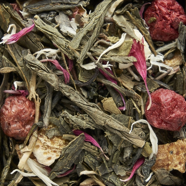 Ingredienti: Tè verdi (Cina, Giappone), arancia scorza, aromi, ribes rosso bacche, aroma naturale, fiordaliso petali